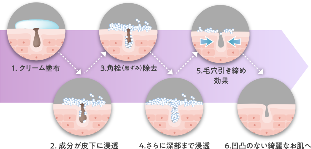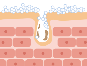 毛穴のタンパク汚れをからめとり古い角質を洗い流します。